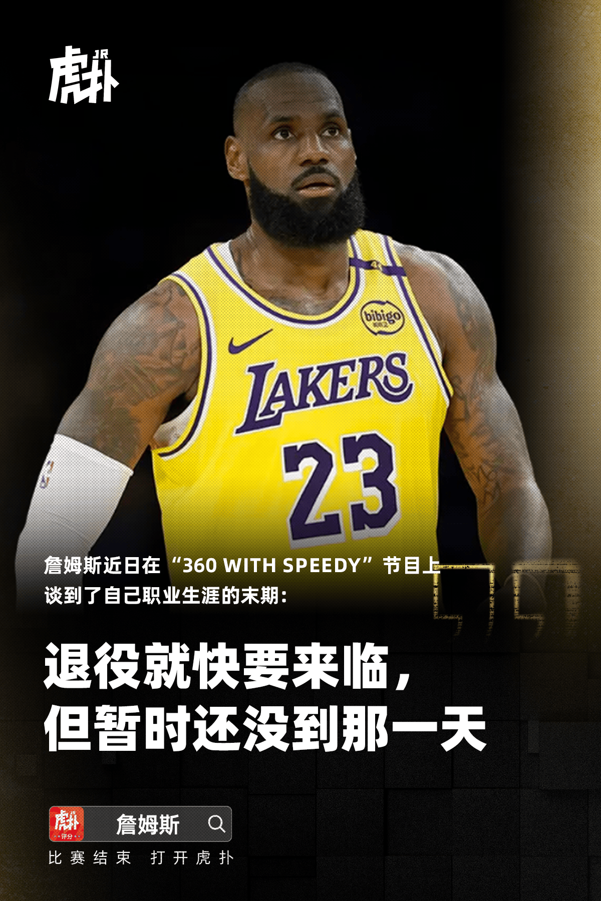 虎撲09月19日訊 詹姆斯近日在 “360 with Speedy” 節(jié)目上談到了自己職業(yè)生涯的末期。